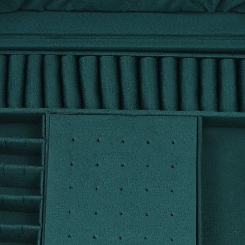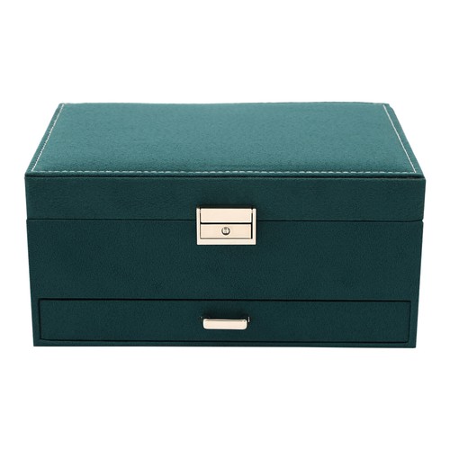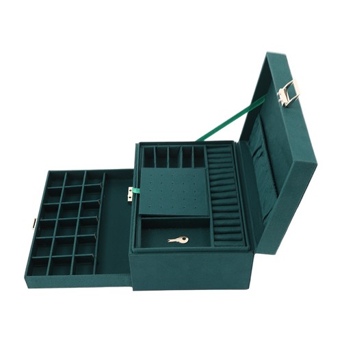 - Three-layer Dark Green Jewelry Storage Box, Flannel Material. It Can Store Accessories Such As Earrings, Earrings, Necklaces, Bracelets, Ring Brooches and Watches. High-quality Hardware Lock Durable and Not Easy to Break, Easy to Open and Close. Earring Stud Storage Hole Neatly Arranged, Clear at a Glance Three-layer Design, Layered Different Types, Large Space