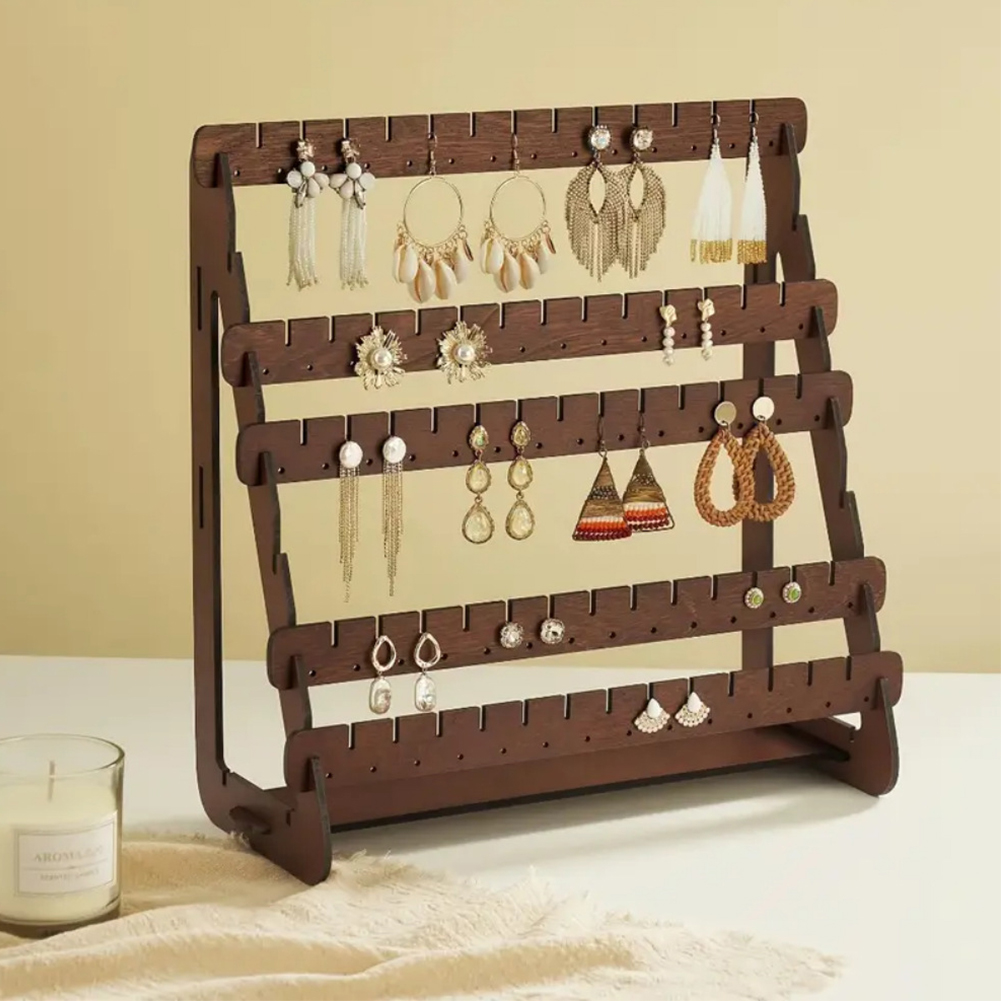Stylish and Versatile: Crafted from high-quality wood, this holder can securely accommodate a wide range of earring types, including brooches, earrings, studs, hooks, looped, lever backs, clip-ons, screw backs, etc.